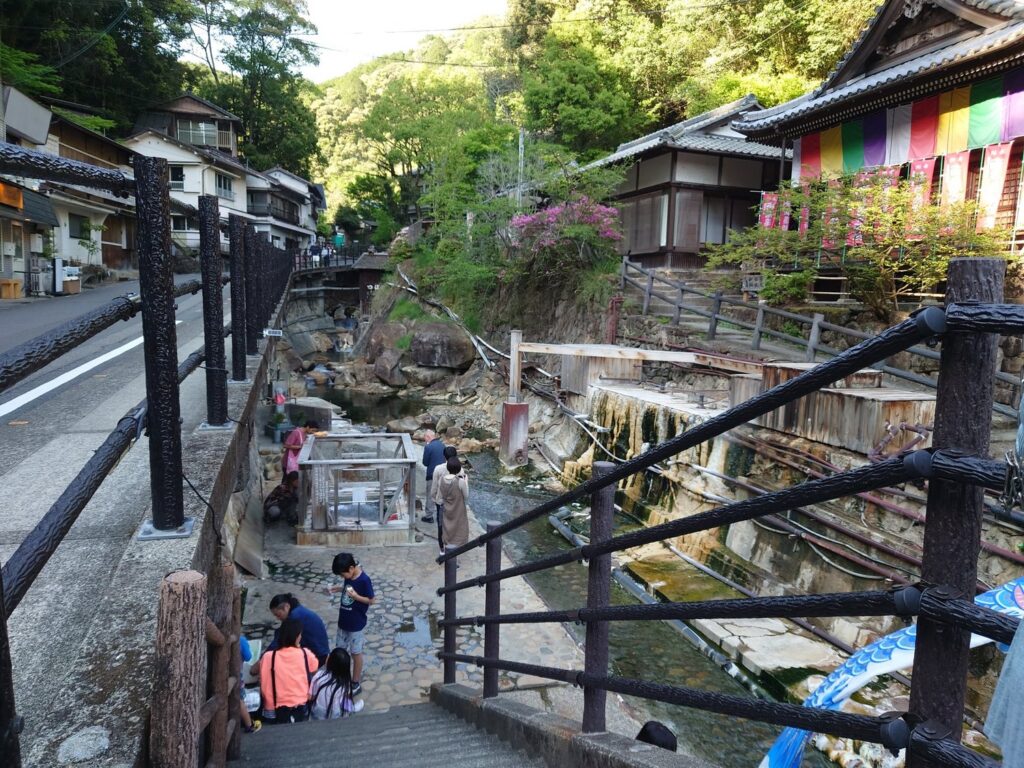 湯の峰温泉まではすぐでした。足元が危うい道はそれほどなかったので、後ろの御夫婦もなんとか下れたことと思います(思いたい)。