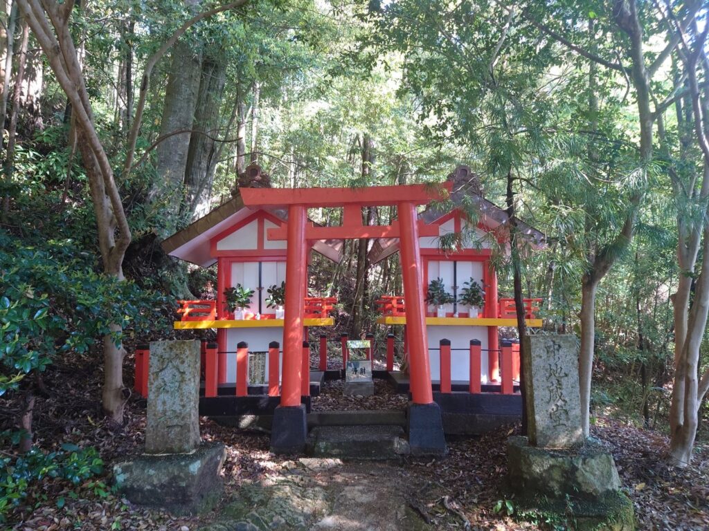 少しだけ参道が広くなり、見上げるとコトビキ岩がありました。「熊野権現垂迹縁起」で熊野三所大神が最初に降臨したとされ、熊野速玉大社奥院と呼ばれています。