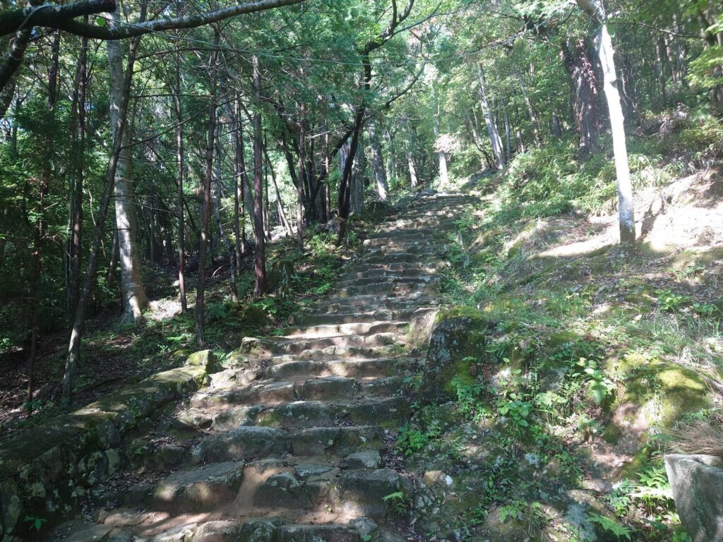 鳥居の先は延々急な石段が続きます。雨の日は止めておいたほうが身のためです。下りが怖い。