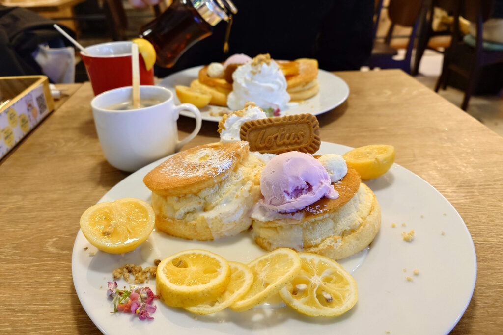 パンケーキには、丸ごとコンポートにしたものが出てきました。とっても甘くて皮ごと食べられます。おいしかった。